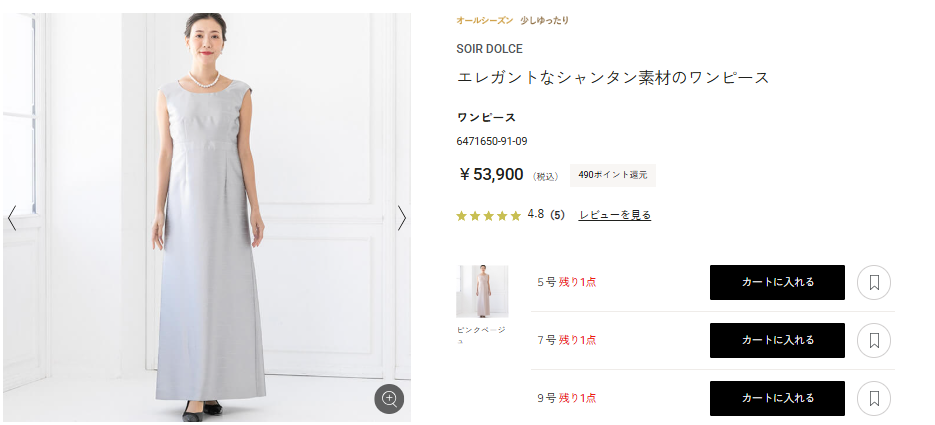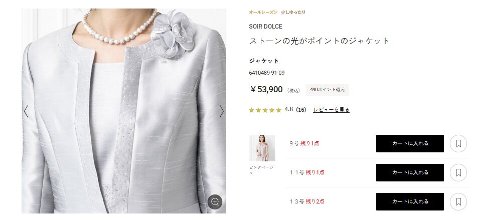 フォーマルな場所でも使えるしっかりとしたデザインとなっており、ジャケットとドレスは別売りで、それぞれ約5万円のようです。